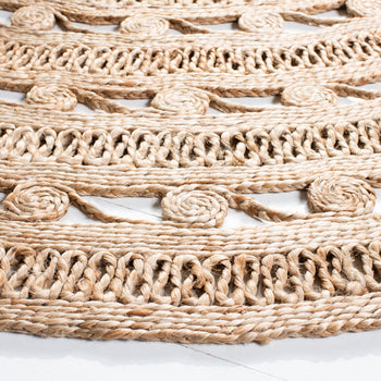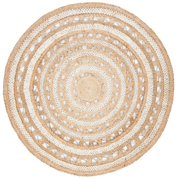 Discover the exceptional allure of our 3' X 3' round, Ivory/Natural Area Rug. Hand-woven by expert artisans in India, this sophisticated rug boasts an impeccable jute construction that echoes a charming contemporary style. Its understated ivory and natural hues radiate a timeless grace, effortlessly transforming any space. A low height of 1/4" makes it sleek and versatile, perfect for adorning your floors without overwhelming your decor. Step into the world of handcrafted luxury with this unique, top-quality rug. Elevate any home or office space with a touch of Indian craftsmanship and contemporary elegance.