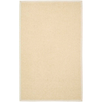 Introducing our exquisite 2' x 3' accent area rug, crafted with precision in the serene hue of creme. This rug, with a height of 3/8 inches, is considered a true testament to skilled craftsmanship. It has been constructed using a power-loomed technique that ensures a tight weave and high durability. The material of choice is sisal, a natural fiber known for its sturdy and textured feel. Each rug features a unique pattern that seamlessly blends a traditional feel with a modern aesthetic, showcasing a pebbly texture that adds depth and interest to any room. Further enhancing its functionality, the addition of latex to the construction provides a non-slip grip ensuring safety and convenience.