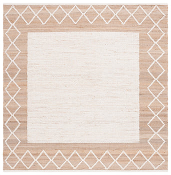 Elevate your living space with our handcrafted area rugs, meticulously woven by skilled artisans in India. This rug exhibits a blend of 60% jute, 20% wool, and 20% cotton, resulting in a texture that is both resilient and soft to the touch. The natural and ivory hues bring a serene and organic feel to any room.