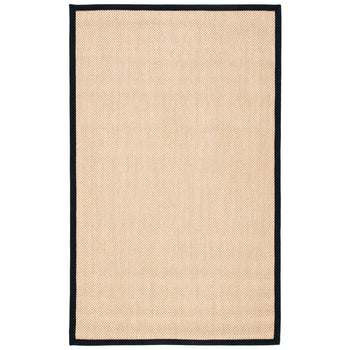 This rug's pattern emanates a natural, woven texture highlighted by its bold black border, providing a visual anchor to any interior decor. Enhance your home or office with a piece that reflects your taste for quality and style. Invest in a rug that not only elevates the look of your space but also offers comfort, durability, and timeless appeal.