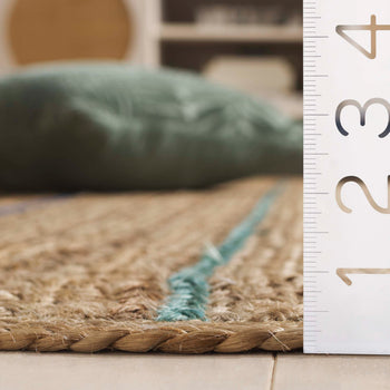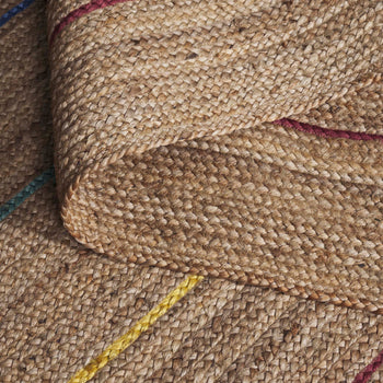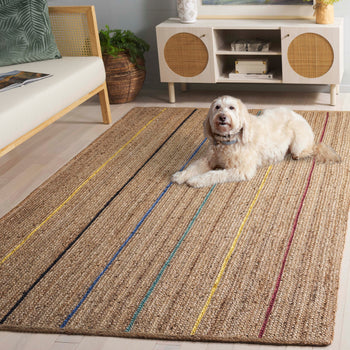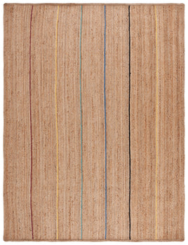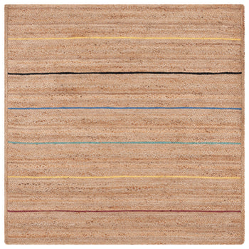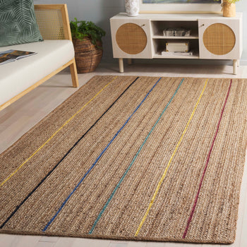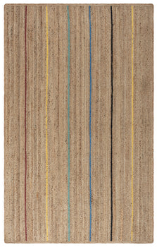 Bring a touch of bohemian charm to your living space with this stunning rug. Its shape fits seamlessly in various rooms while its natural and gold hues add warmth and elegance. Crafted from jute using the flat weave technique, this rug offers a distinct texture that complements its earthy tones. Its striped pattern serves as an eye-catching focal point, enhancing any decor style. Made in India, it reflects a rich tradition of craftsmanship. With its lightweight design and height of only a quarter inch, this rug is both practical and stylish, making it an ideal addition to your home.