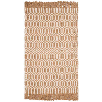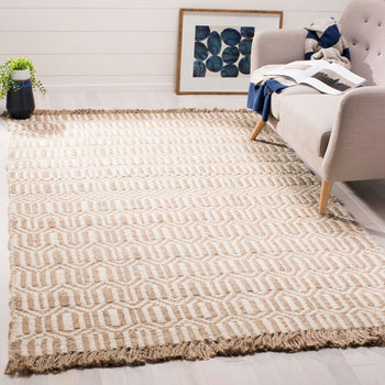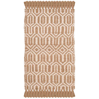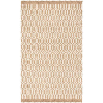 Elevate your home decor with this exquisite 2' X 3' accent area rug that brilliantly blends natural and ivory hues to create a serene and inviting atmosphere. Handwoven with meticulous care by skilled artisans in India, this rug embodies both exceptional craftsmanship and enduring style. The rug's pattern, a captivating geometric design, adds depth and texture to any space while maintaining a sense of timeless sophistication.