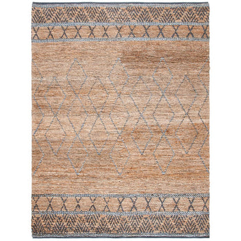 Expertly woven by skilled artisans, the rug is constructed from high-quality jute, a sustainable natural fiber known for its durability and eco-friendliness. This piece embodies a fusion of beige and grey hues, lending a subtle yet sophisticated color palette that can complement a wide range of interiors.