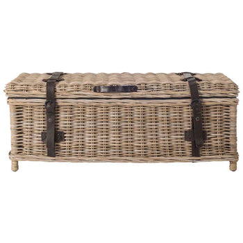 Brimming with vintage charm, this grey rattan storage coffee table serves double duty as a pretty piece of furniture with a convenience place to stow everything and anything . Designed with faux leather straps, cotton lining and hinge top, it its ample interior holds your choice of blankets, pillows, clothes and more.