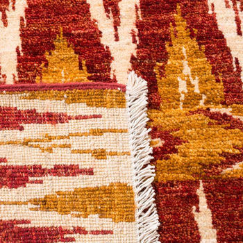 Elevate your living space with the timeless elegance of our 6' x 9' hand-knotted wool area rug, a masterpiece of craftsmanship made in Pakistan. This exquisite rug showcases a rich palette of red and gold, creating a warm and inviting atmosphere in any room. Its medium rectangle shape offers versatile placement options, fitting perfectly in a variety of settings.