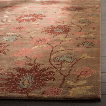 Elevate your living space with the exquisite craftsmanship of our hand-knotted accent rug, proudly made in Nepal. This compact 1'-6" X 2' rug presents a rich cinnamon palette with multi-colored accents, perfectly blending with a variety of decors. The intricate pattern boasts a symphony of botanical motifs that have been meticulously designed to create a timeless piece of floor art.
