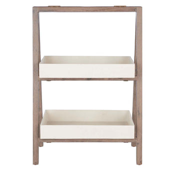 A tropical twist on industrial chic, this Nerri Shelf is the ideal outdoor organizer. Nerri's natural acacia sawhorse inspired frame pairs beautifully with the sandstone shelves, proving itself a masterclass in mixed media artistry.