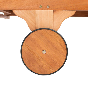 A fresh update of an English garden classic, the Newport Outdoor Lounge Chair recalls the manicured landscapes of Rhode Island seaside mansions. Newport is crafted with fabric and naturally finished eucalyptus wood with back wheels for easy mobility and a sliding table for drinks.