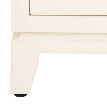 Designed for maximum versatility, this 2 door chest is ideal for living room storage or perfect as a nightstand in the bedroom. Its neutral white and brass finishes blend beautifully with any Decor. Designers love how it hides clutter and unsightly accessories.