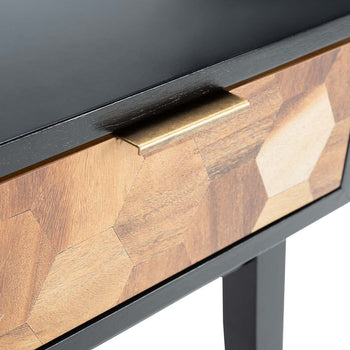 A Mid-Century classic is fabulously restyled for today's contemporary Decor in this Nilo Accent Table. Flaunting a retro silhouette in a sleek black finish, Nilo's single drawer is absolutely breathtaking in its variegated hexagon pattern, beautifully highlighting the natural, alternating wood grains of each facet.