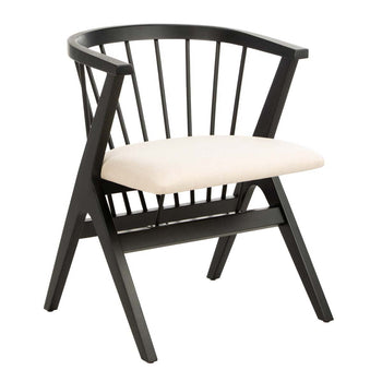 Bring classic contemporary style to the kitchen or dining room with these Noah Dining Chairs (set of two). Noah's spindle back, modernized bow frame, and contrasting geometric base are dramatic and eye catching in a sleek black finish, a beige cushion softening the look so Noah accents any room with ease.