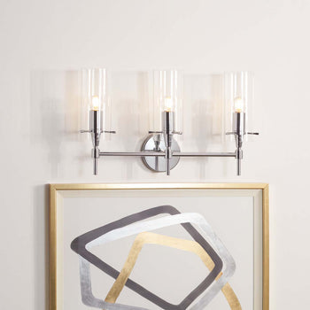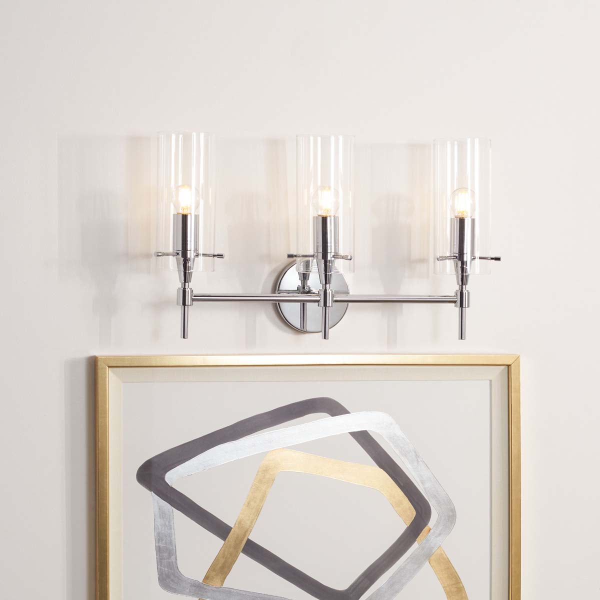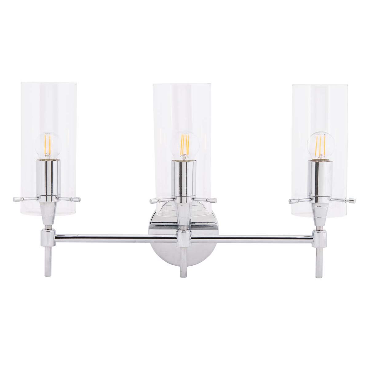 Designed to cast a sensational shimmer in any interior, this Norala Vanity Sconce is at once modern and classic. Norala's three glass shades and industrial inspired bulb are highlighted by a sleek chrome frame, making it the Decor smart choice above a mirror in both the boudoir and bathroom.