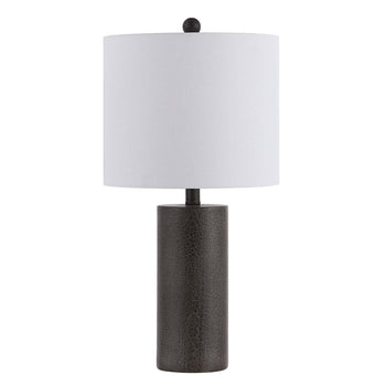 Ideal for bringing subtle unique intrigue to clean lined or minimalist spaces, this Nori Table Lamp is more than meets the eye. Nori's visually textured drum shade and dark grey cylindrical body will make you look twice as it casts a soft glow in any room.