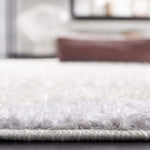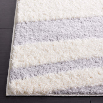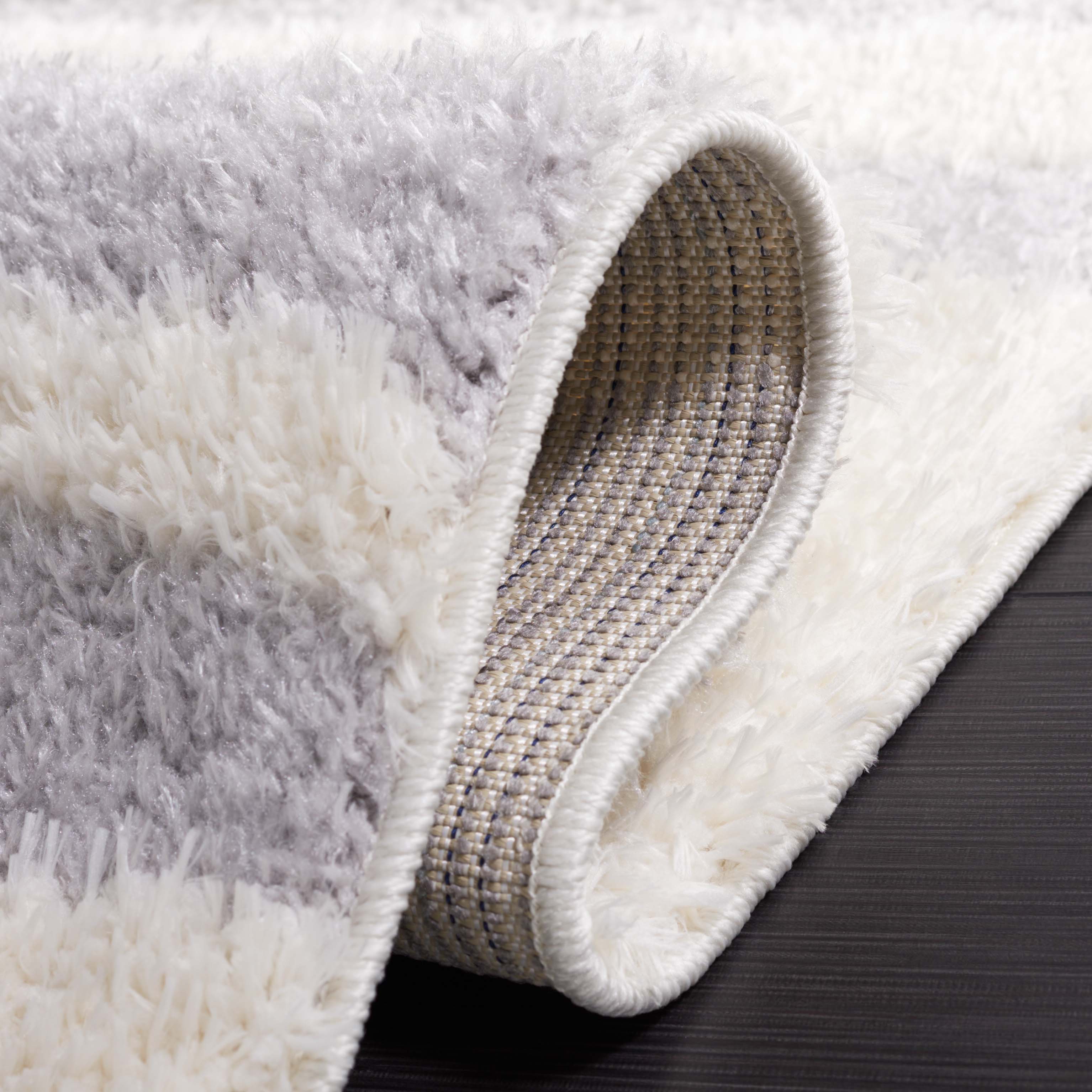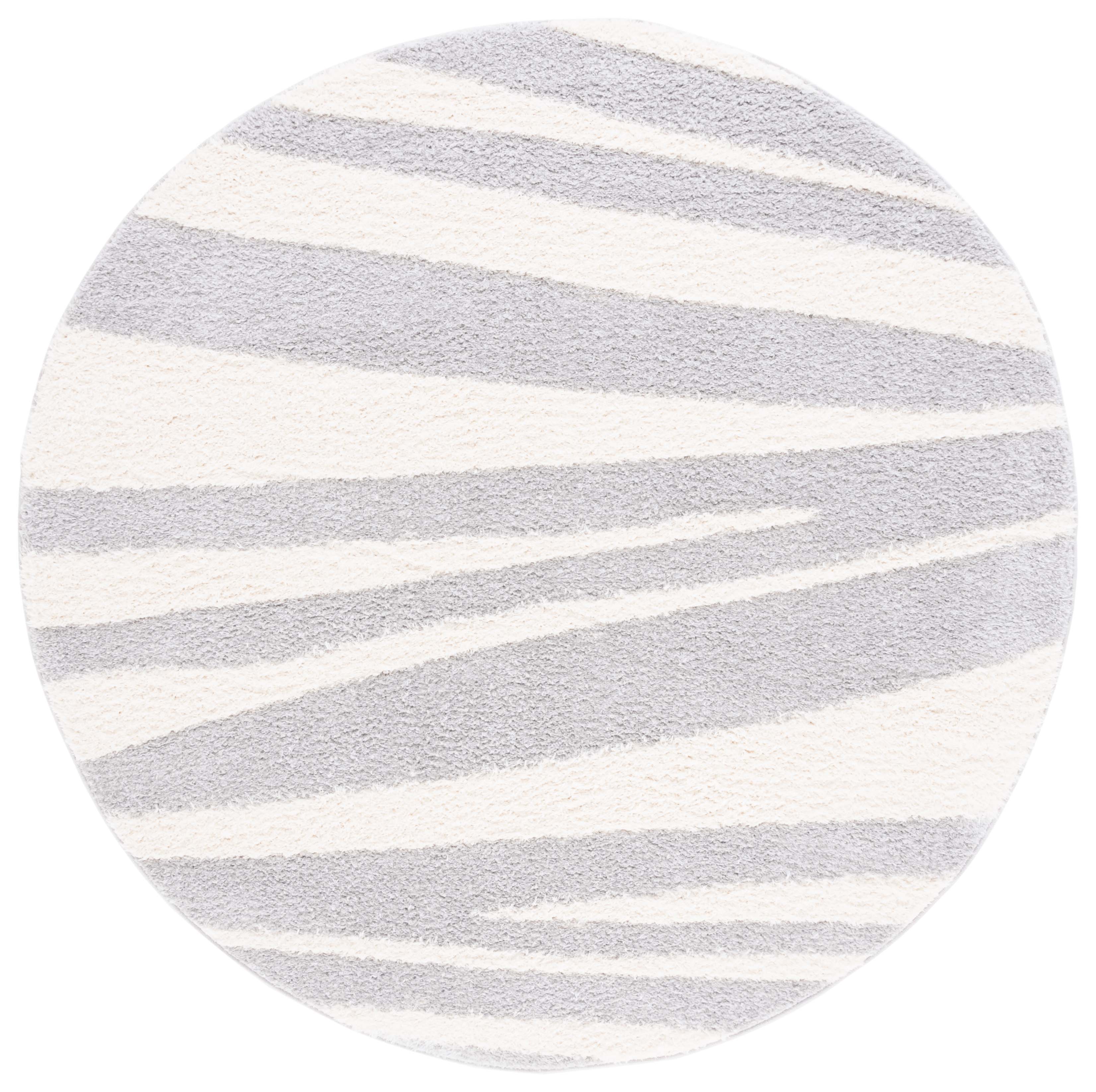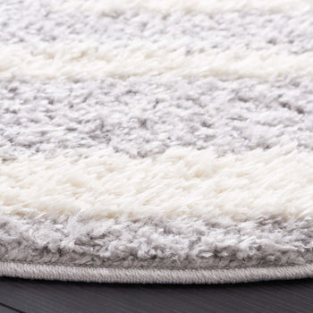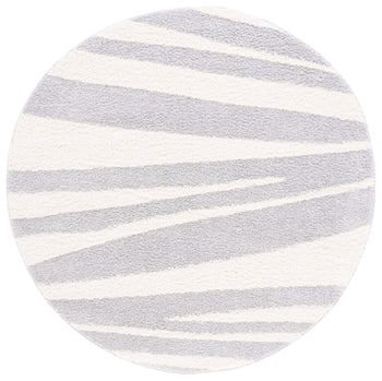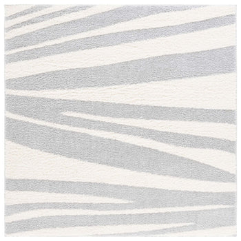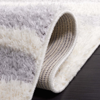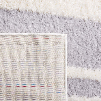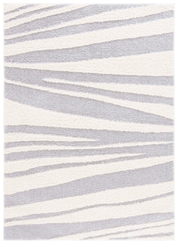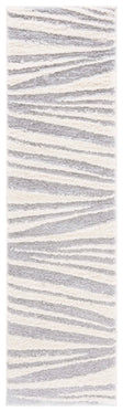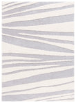 The rug's power-loomed construction ensures precision and durability, utilizing high-grade polyester that is both stain resistant and easy to clean. Its modern style seamlessly complements contemporary decor, while the soothing grey and ivory palette lends a serene yet sophisticated touch to any room.