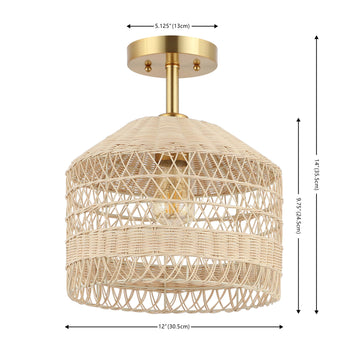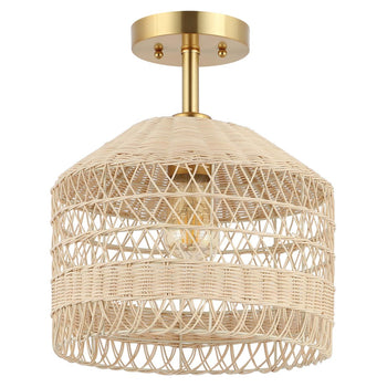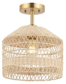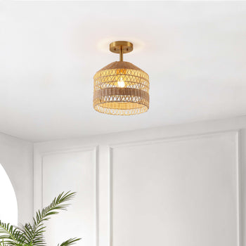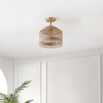 Lend a warm and artisanal update to your ceiling light with our Noyuna flush mount. The intricate and skillfully woven patterns of the canopy catch the eye for statement appeal. The fresh texture and artisanal flair of the flush mount lend a breezy and laid-back air to any room. It is accented with gleaming gold hardware to bring a refined yet relaxed style to your home. Creating a stunning play of light and shadow, our flush mount remains perfect for styling and illuminating your kitchen, bathroom, dining area, or bedroom.