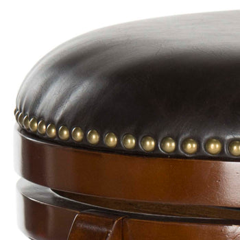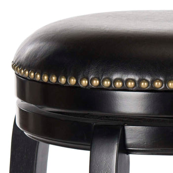 Elegant in its British inspired lines, the Nuncio bar stool with swivel seat is a classic. Crafted of eco friendly rubberwood in a black finish and black PU leather with bronze nailhead trim, this backless bar stool won's block pretty views.