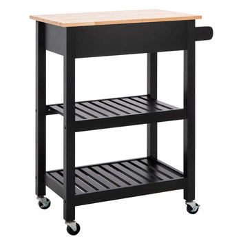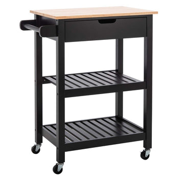 Ideal for both the small-space breakfast nook and the expansive modern kitchen, this O'seill Kitchen Cart is the perfect blend of form and function. O'seill's two slatted shelves and single drawer provide ample space for cutlery or spices, and designers love how its black wood frame contrasts its natural-finished top.