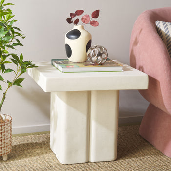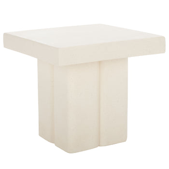 Invite modern drama to your home with our charming Oaklyn square accent table. Our clean-lined accent table stands outs with its shapely and voluminous profile. Its chunky square tabletop attains an eye-catching stature resting upon a pedestal. The pedestal is softened and beautifully detailed to add definition and interest to our stunning accent table. It features a subtly textured and plaster-like white finish to sit easy and gracefully in your bedroom, living space, or home office. The accent table can provide the perfect perch for your essentials and decor items.