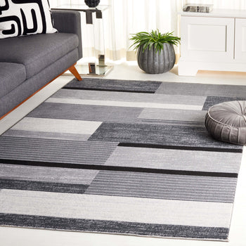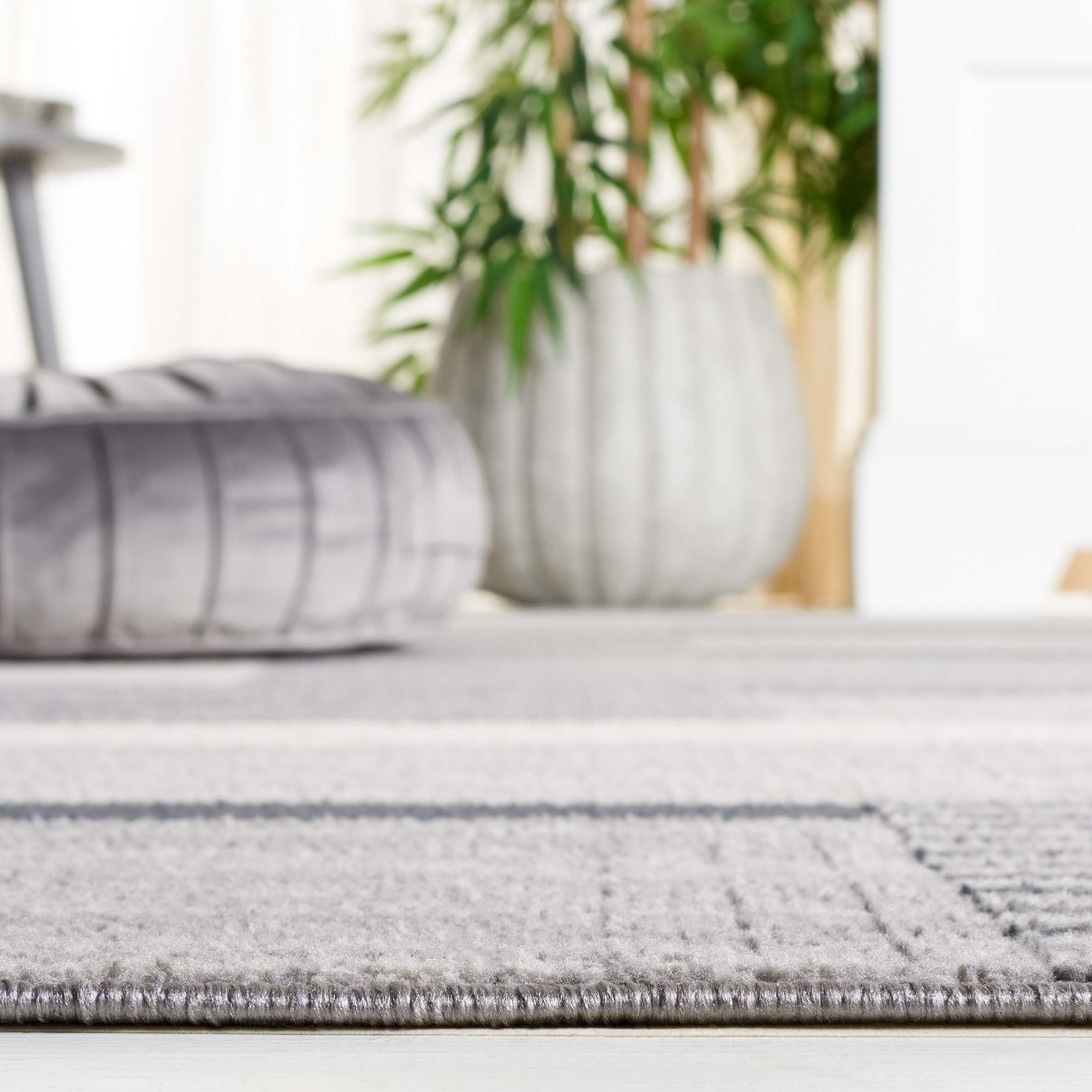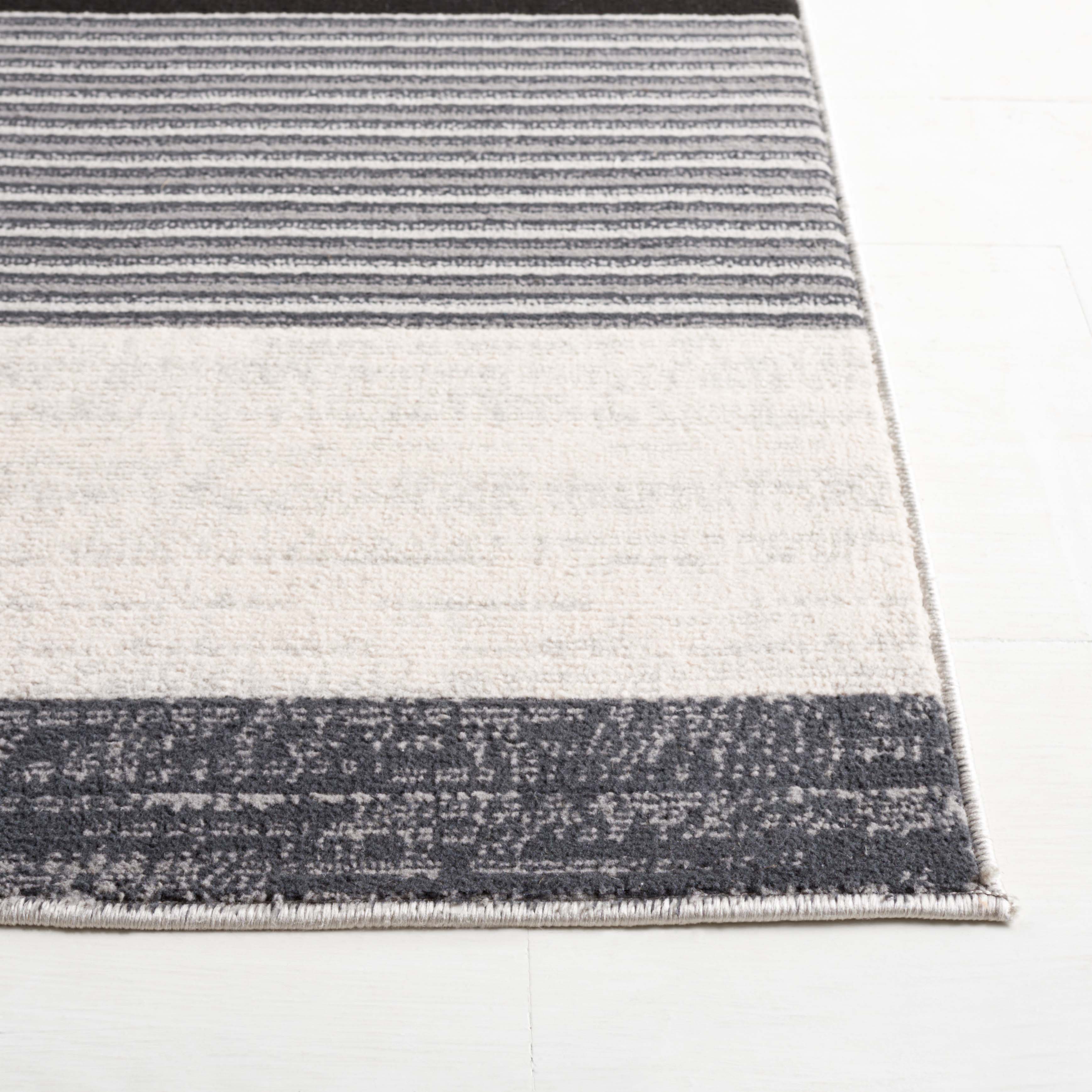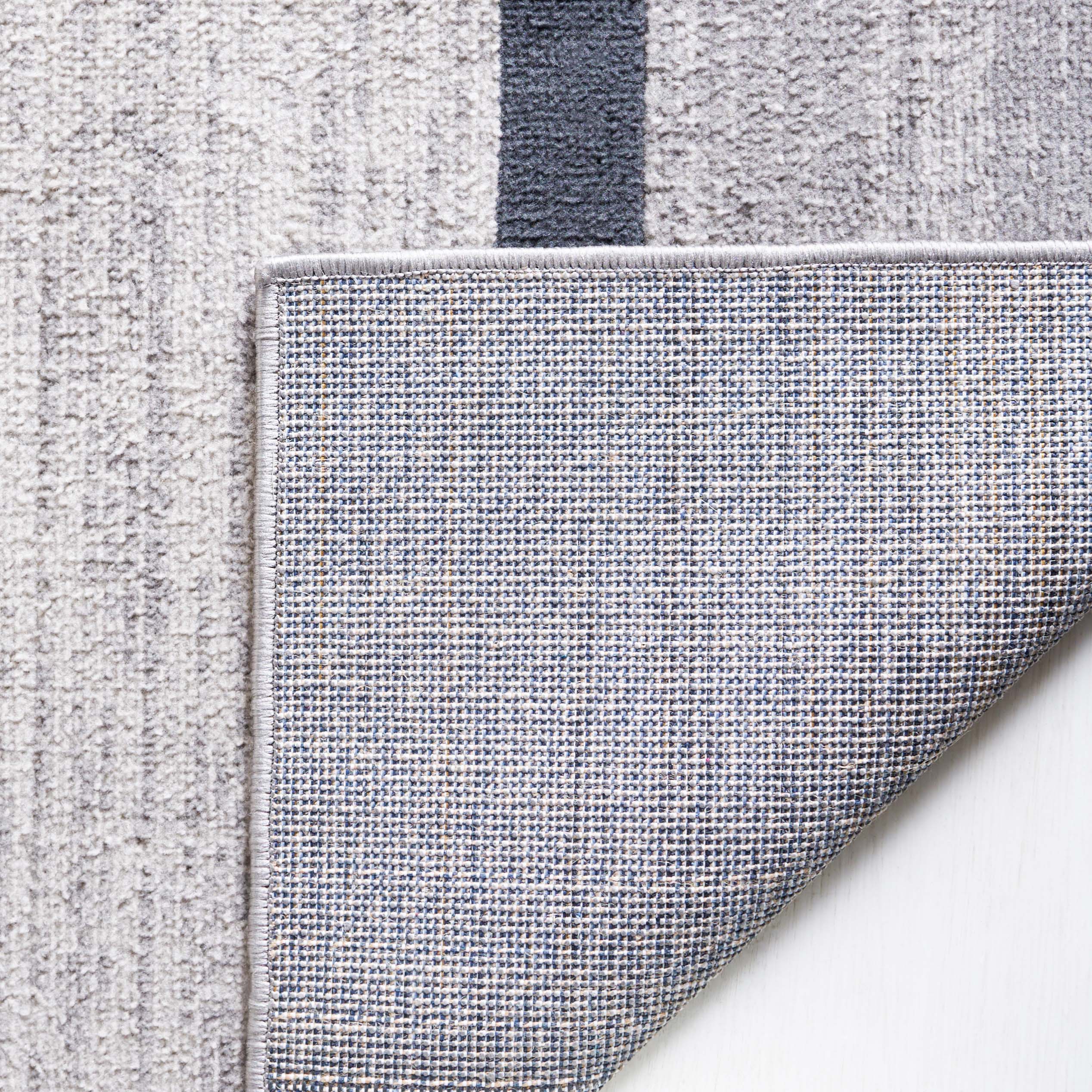 Elevate the ambiance of your hallway or narrow space with this exquisitely crafted runner rug, designed to seamlessly align with both contemporary and classic aesthetics. Our Modern Grey/Black Ivory Runner Rug is tailored to perfection with practical dimensions of 2'-2" x 8', ensuring a fit that is ideal for elongated areas needing a touch of sophistication.