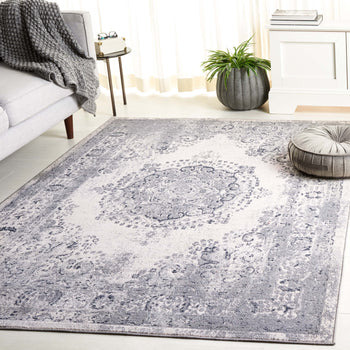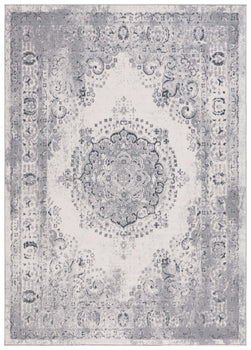 The serene grey and ivory color palette exudes sophistication and offers versatility, making it an ideal choice for a variety of room settings. The traditional patterns, captured in the image, boast elegant medallions flanked by intricate filigree, invoking an aura of old-world charm and luxury.
