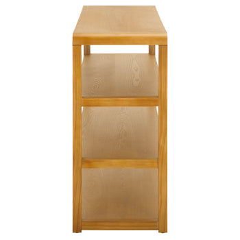 Introducing the OMARA 4 Tier Console Table, your stylish and practical solution for displaying your prized collectibles, storing everyday items, and sprucing up your living space. Crafted in vibrant natural colors, this piece of furniture is a testament to the timeless allure and versatility of wood. It features four sturdy levels, providing ample space that you can utilize optimally. Whether you want a place for your family photos, books, or indoor plants, the OMARA console table makes the perfect fit for any corner and wall of your home. Not just functional, its aesthetically pleasing design enhances the overall appeal of your room. With its wood grain detailing, it adds warmth and rustic charm to your space, pairing well with any interior decor style. Placing emphasis on structural durability and design detail, the OMARA 4 Tier Console Table is indeed an investment for your home, blending utility with understated style. Reinvent your living area with this versatile beauty. It's more than just a table, it's a conversation piece for your sanctuary. Experience the difference it brings to your space.