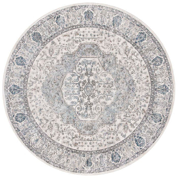 The rug exhibits a classic and sophisticated pattern that encapsulates the time-honored beauty found in vintage-style carpets, bringing a stately and luxurious feel to any room. The intricate details, emphasized through its elegant ivory and grey color palette, create a subtle yet striking visual appeal?a testament to traditional aesthetics reimagined for contemporary interiors.