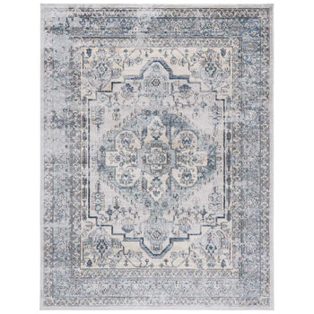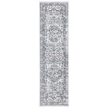 Crafted in Turkey with meticulous attention to detail, this rug features a graceful light blue and ivory color palette, invoking a sense of peace and elegance. The rug's 3/8" height provides a plush underfoot experience without compromising on ease of maintenance.