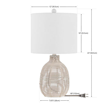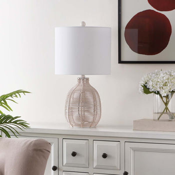 Enliven a tabletop with the fresh and breezy appeal of our Oroya table lamp. Rattan, in an gorgeous finish, encircles the base of the lamp to attain an airy and voluminous silhouette. With a rich textural appeal, our table lamp invites warmth and casual sophistication to your home. It remains a perfect complement to boho-chic or coastal-inspired space to brighten up a reading nook, entryway, or nightstand.