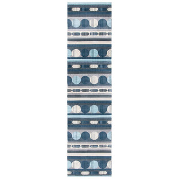 Elevate your home with a touch of sophistication and contemporary flair using our exquisite runner area rug. Sized at a versatile 2'-2" X 9', this piece is perfect for adding a streamlined look to hallways, entryways, or any elongated space needing an extra layer of style and comfort. Its modern GREY/AQUA color palette features a series of harmonious geometric patterns that imbue a serene and inviting atmosphere into your living space.