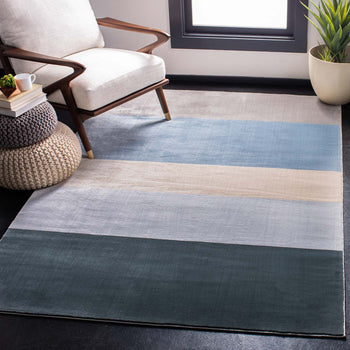 The refined pattern on this rug presents a striking array of graduated horizontal stripes, offering a visual feast that draws the eye without overwhelming your d?cor. Each stripe harmoniously transitions into the next, creating a calming seascape of color that captures the essence of contemporary design.