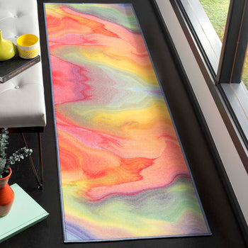 Crafted with precision using an advanced Power Loomed technique, this rug features a striking blend of fuchsia and yellow hues that swirl together in an emotive and abstract pattern, inspiring the imagination and bringing an artistic touch to any corridor or long space.