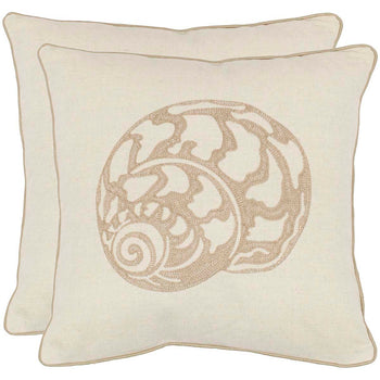 Known as the Greek Sailor's Shell, the taupe Nautilus motif adorning this cream pillow of 70% cotton and 30% linen is a natural addition to any room. Contrasting taupe piping frames this elegant design.
