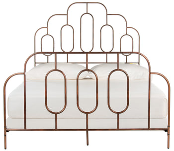 Bold and dramatic, this contemporary Metal retro bed brings luxury and style to the bedroom. Finely crafted with sinuous curves, designers love the gold finish on its headboard and footboard. It casts a striking silhouette that complements any decor.,Bold and dramatic, this contemporary Metal retro bed brings luxury and style to the bedroom. Finely crafted with sinuous curves, designers love the gold finish on its headboard and footboard. It casts a striking silhouette that complements any decor.