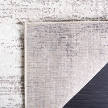 The rug features a subtle yet sophisticated grey and ivory color palette, effortlessly complementing a wide range of interior styles. The gentle hues weave together to create a calming atmosphere in any room.