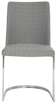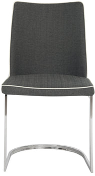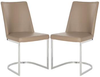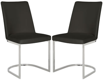 Designed for the sophisticated palette, these tasteful side chairs was inspired by London's fine dining scene. An open frame of polished curved chrome and smooth linen or PU leather are the perfect pairing of elegance and luxury. Sold in sets of two.