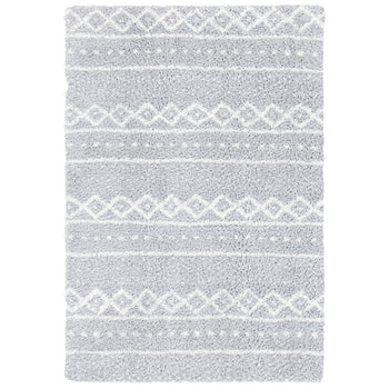 Elevate your living space with the cozy allure of this 4' x 6' small rectangle area rug in a chic grey and ivory palette. Embrace the indulgent comfort of its Shag & Flokati style that invites you to sink your toes into the plush 1 1/8" pile height. Expertly crafted in Turkey utilizing advanced power-loomed techniques, this rug promises a durable and easy-to-maintain surface, thanks to its resilient polypropylene pile construction.