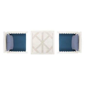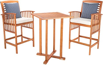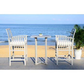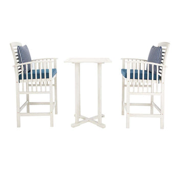 The hottest rooftop bar in Palm Springs inspired this 3 piece bar set. Crafted in a neutral natural, its contemporary 39.8 inch table and sleek matching chairs with modern white upholstery lend instant bistro style to any outdoor terrace or entertaining area.