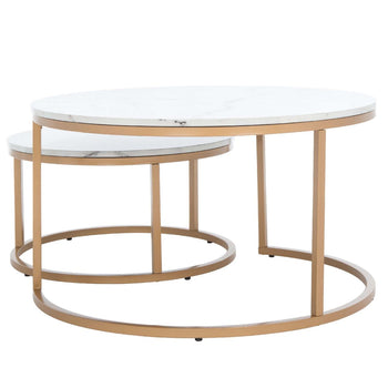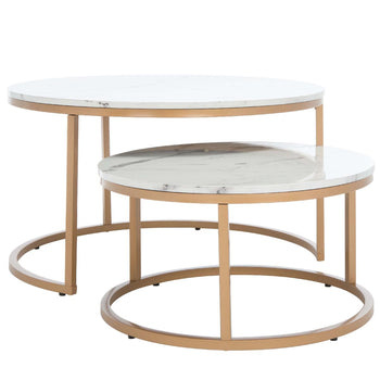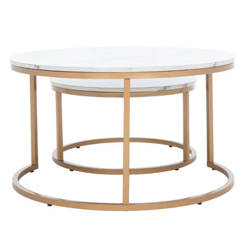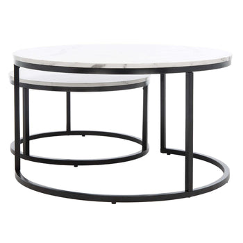 Elevate Your Home With The Style And Convenience Of Our Peppino Nesting Coffee Table. A Round Faux White Marble Top And Slender Black Metallic Legs Complete The Refined And Timeless Aesthetics Of The Coffee Table. Featuring Two Scaled Tables To Seamlessly Nest Together, The Coffee Table Offers Endless Styling Possibilities. It Vouches For Sleek Contemporary Style When Nested Together And Can Quickly Tuck Away, Offering Ultimate Convenience To Compact And Multi-Purpose Rooms.