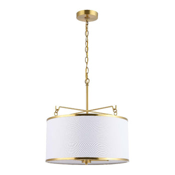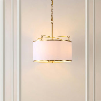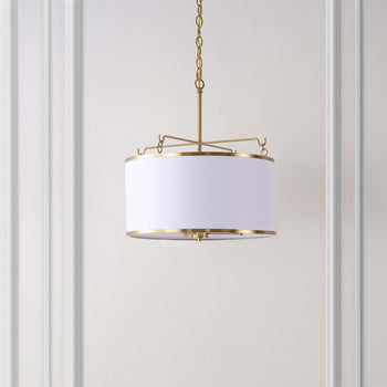 Bring refined luxury to your home with our Perzeta extendable pendant. Beautifully suspending a streamlined drum shade, our ceiling light creates a polished and timeless statement. Its soft white fabric shade creates a stunning contrast with gleaming brass hardware to attain a refined and graceful stature in any room. Featuring 3 lights, our extendable pendant offers a warm and radiant glow to illuminate your entryway, bedroom, dining area, or living room in style.