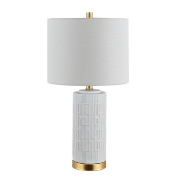 Revitalizing Art Deco geometry for today's contemporary Decor, this Phoenix Table Lamp brings a sense of depth and dimension to any interior. Phoenix's textured details and white ceramic body are beautifully highlighted by the sleek gold finish on its iron base and finial.