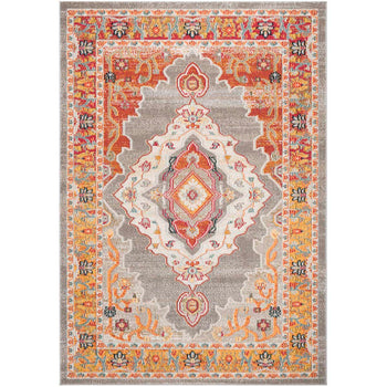 The color palette is a sophisticated blend of orange and grey, masterfully interwoven to create a visually stunning traditional pattern that will infuse your space with a sense of grandeur. The intricate designs and vibrant hues are thoughtfully designed to complement a variety of decor styles, all while making a statement of their own.