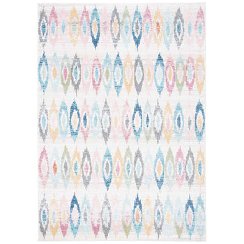 Embodying modern sophistication, our rug showcases a harmonious ivory and blue color palette, accentuated with a kaleidoscope of colors that seamlessly blend into any decor. The intricate patterning is rich in detail and character, adding depth and texture to your floors.