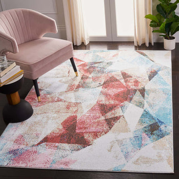 The brilliant ivory and terracotta palette dances across the rug in a dynamic abstract pattern that promises to be the centerpiece of any room. Its OEKO-TEX certification guarantees that the rug is free from harmful substances, offering peace of mind alongside its striking visuals.
