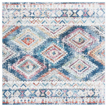 Elevate your living space with the stunningly crafted contemporary area rug, available in a perfect size of 4'-5" x 6'-5", designed to fit seamlessly into your home. Adorned with a harmonious blend of blue and ivory hues, this small rectangle rug showcases an intricately detailed pattern that draws inspiration from the image provided, featuring vibrant geometric motifs that effortlessly capture the eye.