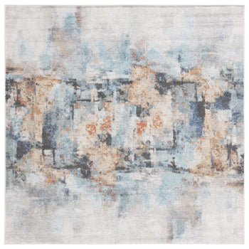Expertly crafted in Turkey, this rug showcases a stunning abstract pattern, blended effortlessly with a palette of aqua, gold, and rust hues that exude sophistication and style. Its low-profile height of 1/8 inches ensures a sleek, seamless fit under furniture and in entryways without sacrificing comfort.