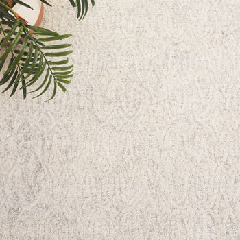 Taking a closer look at the intricate pattern, you'll notice a subtle floral motif gracefully embedded within the rug's design. The understated pattern adds a touch of luxury and refinement without overwhelming your decor. Its neutral beige palette ensures it seamlessly blends with a variety of interior themes, making it a versatile addition to any home.