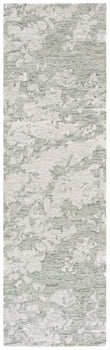 The rug's intricate design showcases a distressed abstract pattern that blends seamlessly into both contemporary and traditional decor. This abstract motif in varying shades of grey on an ivory background brings a sophisticated and artistic aesthetic to any hallway or long narrow space in need of both style and warmth.