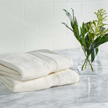 Add effortless sophistication to any bathroom with our Plush bath towel set. Our two-piece bath towel set is loomed with a soft weave in natural cotton. Both soft and thick, the towel vouches for an endlessly luxurious feel. It remains both durable and water-absorbent to offer a spa-like experience within the comfort of your own home. Adorned in a graceful white hue, our bath towel set remains a plush and versatile addition.