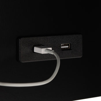 Never again will you have to leave the comfy spot on the couch to find an outlet to charge your phone with this Portland USB Side Table. Portland's open black C-style frame is ideal for sliding the base beneath a sofa or chair so the top serves as a hand's free surface for drinks and snacks, and two USB ports make charging devices a breeze.