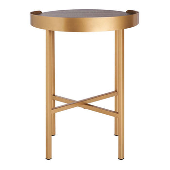 Iconic country charm meets modern mystique in this Prague Round Side Table. Pairing stylish geometry with the wood's organic allure, Prague's gold raised tapered edges give its rustic light grey oak finish a subtle, glamorous touch. A crossed X base enhances Prague's decorative depth.